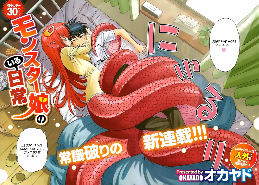 Everyday Life with Monster Girls (モンスター娘のいる日常, Monsutā Musume no Iru Nichijō) or Monster Musume is a manga and anime written by Okayado (オカヤド).