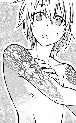 Upon his rebirth as Farma, he was granted several powerful abilities by the new world’s Goddess of Medicine, symbolized by intricate patterns on his upper arms. His divine art was changed from water to non-attribute, allowing him to create, control or destroy any substance as long as he knows its exact molecular makeup. Farma usually uses this to create ingredients for his medicines and experiments, but he could also perform astounding feats of magic, such as destroying a large amount of sea water or controlling fire and ice. He also has a magical sight that allows him to diagnose a person’s ailments and work out suitable treatments for such, if there are any. Because he is now a semi-divine being, Farma doesn’t cast a shadow and he can actually gain energy from prayers to the Goddess of Medicine.