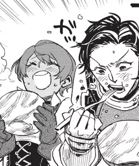 Thinking about all this makes you hungry. Today’s meal is stir-fried pork, made from a giant red boar the adventurers hunted early today.