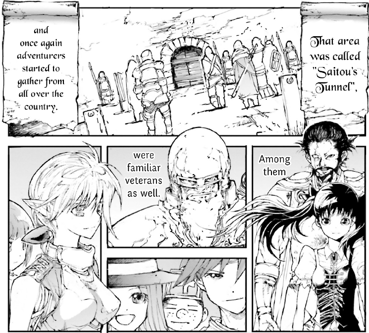 One day, Saitou discovers a Roomba in the Labyrinth and follows it to a hidden door. With the aid of the wizard Morlock, the door is opened, leading to an unexplored area of the Labyrinth that would later be called “Saitou’s Tunnel”. Adventurers from all over the country once again gathered at the Labyrinth, attracted by promises of undiscovered riches and lore. Among these eclectic personalities are the chosen hero Cainz, the cynical priest Montiel Puitt, the elf brawler Flan’nil Nil Ar’nil and the dwarf sorcerer Gibengur.