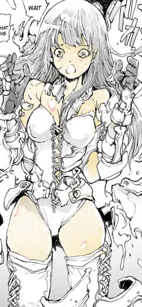 Raelza Morlock, a beautiful warrior and Morlock’s adopted daughter. A tomboy with a dry personality, she gradually warms up to Saitou over time and even becomes attracted to him but she denies it. Raelza is self-conscious about the scar on her right cheek, which was inflicted on her by a goblin when she started out as an adventurer. She is also frightened of eels and other long, slimy creatures. As the fighter of her team, Raelza usually uses a large broadsword and wears heavy armor, but she is skilled with many kinds of weapons. Since Morlock and Lafan are both magicians with no skill in combat, she often had to divide her attention between fighting monsters and protecting them. With Saitou’s aid, Raelza can now focus more attention on the monsters.