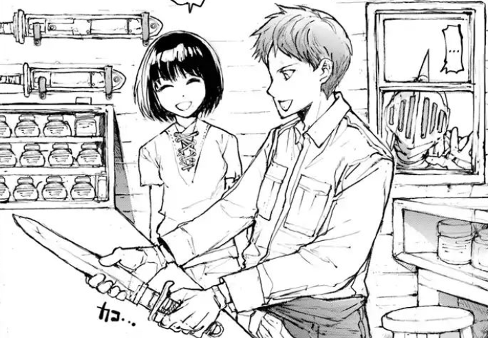 Saitou (斎藤, Saitō), a Japanese handyman. Friendly yet insecure, he is eager to be as helpful to his new friends as he could. Saitou’s skill with locks is such that he was able to unlock the 108-lock door (guarded against magic!) preventing access to Donbine’s workshop. He also helps his team by carrying different weapons for Raelza, memorizing spell incantations for the forgetful Morlock and defending Lafan from attack. With this, Saitou is essentially the linchpin of his team, which is demonstrated when the others struggle without him after he caught a cold! Despite all this, he still doubts himself at times.