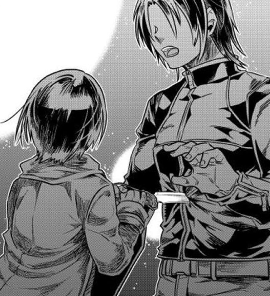 Kichi (吉), Rou’s best friend, rival and the leader of Anger, Parabellum’s heavy weapons division (Race: Goblin > Hobgoblin > Ogre > Minotaur). Aggressive, easygoing and simple-minded, he prefers to focus on fighting and leaves the planning to Rou and the others. Since becoming a gigantic minotaur, Kichi gained the ability to breathe both fire and lightning. He prefers to use a battleax and a shield when fighting and his favorite weapon is the Great Gleaming Axe of the Fire Emperor, a gift from the Demigod of Fire.