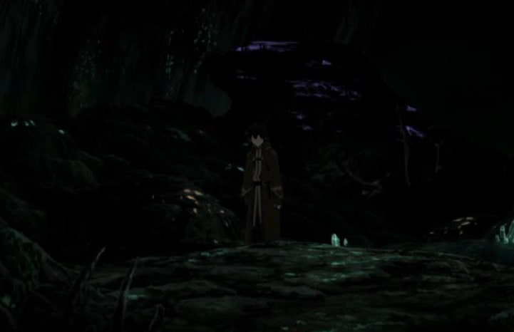 When Hajime awakens, he almost immediately loses his left arm to a huge Claw Bear. After digging himself underground to hide, he accidentally finds a Divinity Stone, a crystal that secretes a liquid that could heal any injury. Badly injured and starving, the delirious Hajime is consumed with despair and rage as he vows to survive by any means necessary. After recovering, he hunts the Labyrinth’s monsters, eats their flesh and swiftly grows in power. Eventually, he kills the Claw Bear that ate his arm.