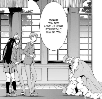 “The ritual we used looks for suitable people and summons them as heroes,” says the King. “Didn’t you hear the sound of a bell?”